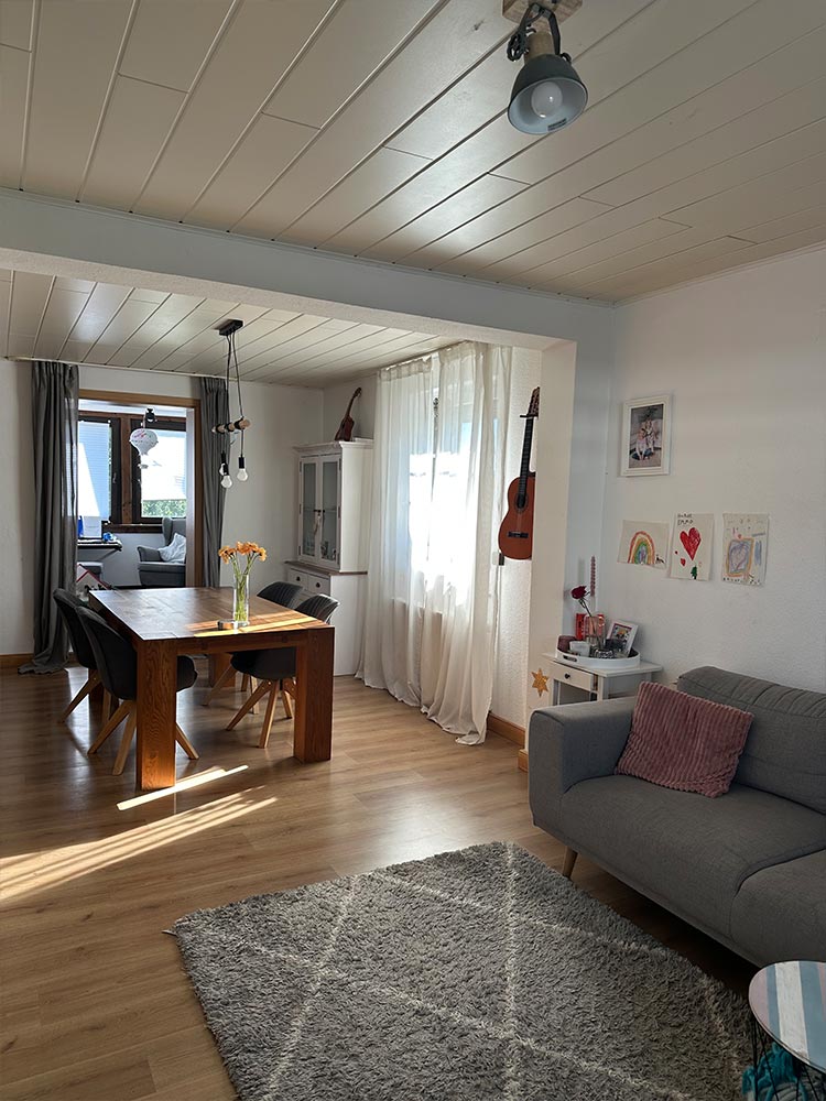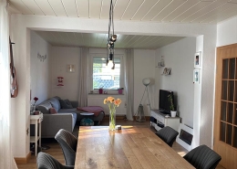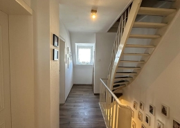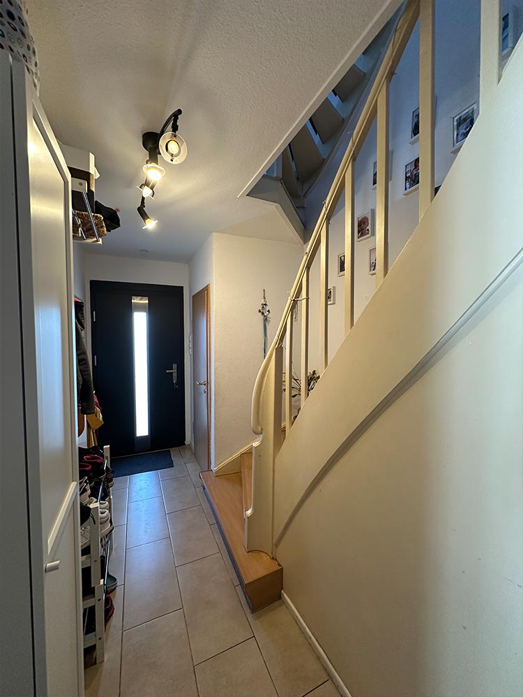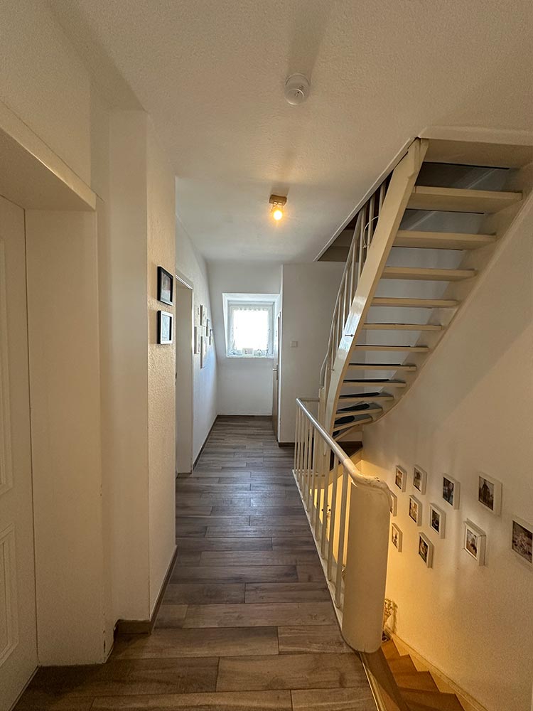 Der Eingangsbereich führt in eine kleine Diele, von der aus Sie sowohl ins Obergeschoss als auch ins Gäste-WC sowie in den offenen und gemütlichen Wohn-Essbereich (ca. 27 mÇ) mit angrenzender Küche (ca. 6 mÇ) im Erdgeschoss gelangen.