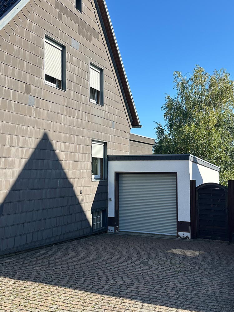 Im Obergeschoss erwarten Sie zwei helle Schlafzimmer (ca. 14 mÇ und ca. 12 mÇ) sowie ein modernisiertes Badezimmer. Eine kleine Treppe führt ins Dachgeschoss, das derzeit als drittes Schlafzimmer genutzt wird (ca. 10 mÇ). Dieses ist wohnlich ausgebaut, jedoch nur als Nutzfläche ausgewiesen. Über den Keller erreichen Sie den schönen Garten mit Obstbaum und herrlicher Weitsicht. Die Garage ist zusätzlich über ein Gartentor zugänglich und bietet weiteren Stauraum. Ein tolles Haus in einer familienfreundlichen Umgebung wartet hier auf Sie!